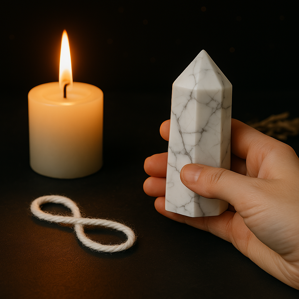 In crystal magic, Howlite is used to “cool” anger, dissolve emotional heat, and ease the fire of impulsive behavior. It’s considered a “soothing stone” in talismans, crystal grids, and rituals of release.