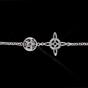 Mystical protection bracelet in sterling silver, combining the ancestral energy of the Witch’s Knot with the esoteric power of the Tetragrammaton.