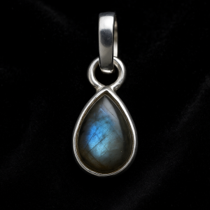 Small teardrop-shaped labradorite pendant with mystical, iridescent reflections. Perfect to carry the protective energy of this magical stone with you.