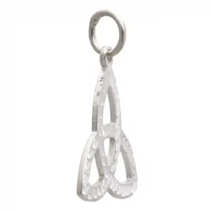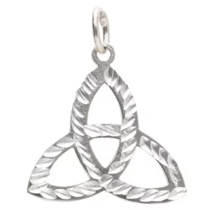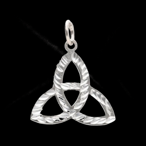 Silver pendant shaped as a Celtic triquetra, an ancient symbol of spiritual trinity and connection with life’s cycles.