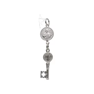 Silver key with the Saint Benedict medal, a symbol of protection and opening of spiritual paths.