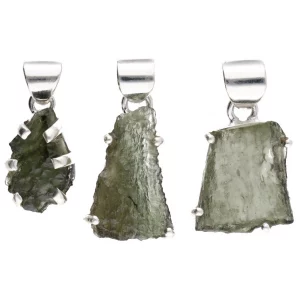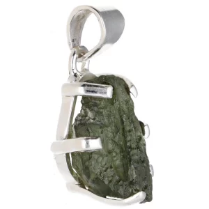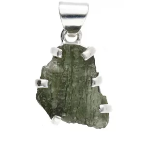 Powerful pendant made with natural moldavite set in 925 sterling silver, featuring an open bezel to enhance its vibrational energy.