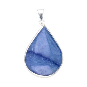 Blue quartz teardrop pendant, silver plated, perfect for soothing energy and enhancing communication.