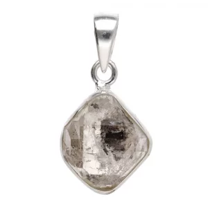 Herkimer diamond pendant set in silver, perfect for raising vibration, cleansing the aura, and enhancing spiritual clarity.