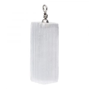 Rectangular selenite pendant from Morocco, perfect for balancing energy and bringing spiritual clarity.