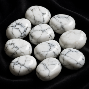Natural howlite tumbled stone from South Africa. Perfect for calming the mind, promoting restful sleep, and releasing emotional tension.
