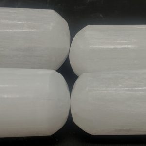 Tumbled white Selenite from Morocco, polished and cylindrical, perfect for channeling light energy, cleansing, and mental clarity.