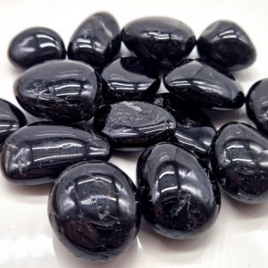 Natural black tourmaline tumbled stone from Brazil. Perfect for protection, grounding, aura cleansing, and blocking negative energy.