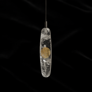 Crystal quartz biotensor with a golden Flower of Life symbol, crafted to enhance energy and support dowsing work.