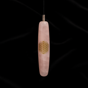 Biotensor pendulum made of rose quartz, featuring a golden Flower of Life. Perfect for energy healing, dowsing and auric field harmonization.