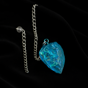 Raw Aqua Aura blue quartz pendulum, perfect for spiritual channeling, raising vibration, and connecting with subtle realms.