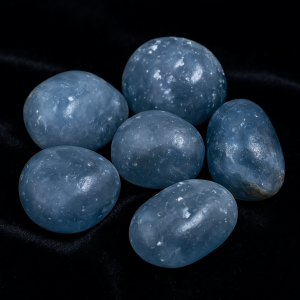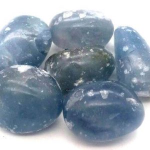 Natural celestine tumbled stones from Brazil. A stone of celestial connection, deep serenity, and spiritual channeling.