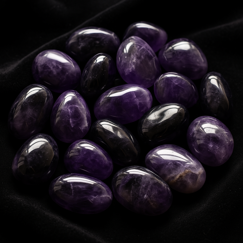 Premium amethyst tumbled stones from Uruguay. With intense color and deep shine, perfect for elevating spiritual energy and protecting the aura.
