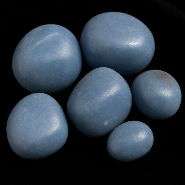 Natural angelite tumbled stones from Brazil. A stone of inner peace, spiritual connection, and higher realm communication.