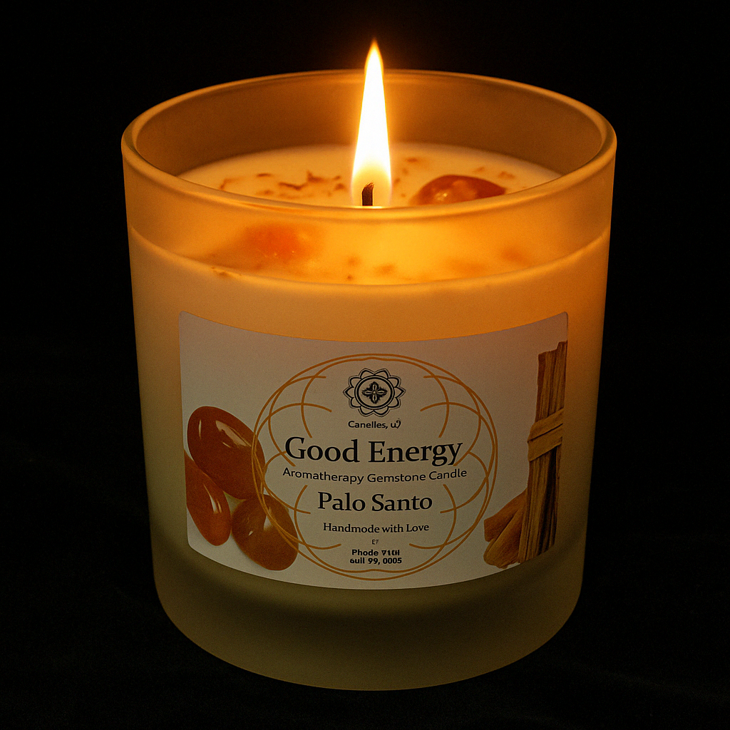 Handmade Palo Santo candle for deep spiritual cleansing, perfect to repel negative energies and refresh your space with its sacred scent.