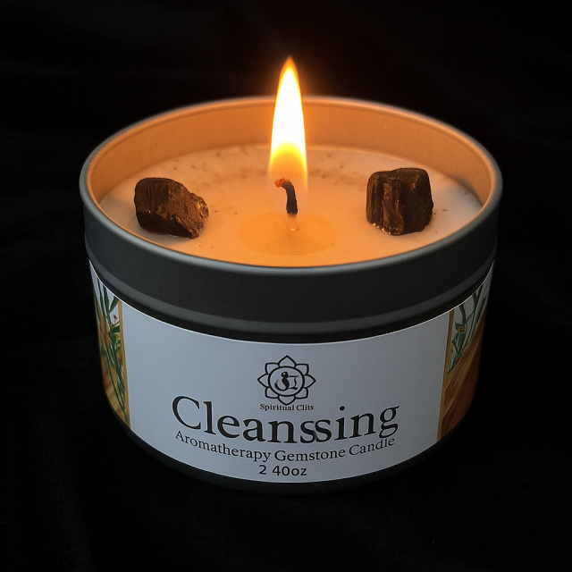 A candle with natural smoky quartz to strengthen willpower, break old habits, and promote self-discipline. Perfect for those seeking to overcome emotional blockages and repetitive patterns.