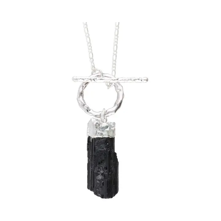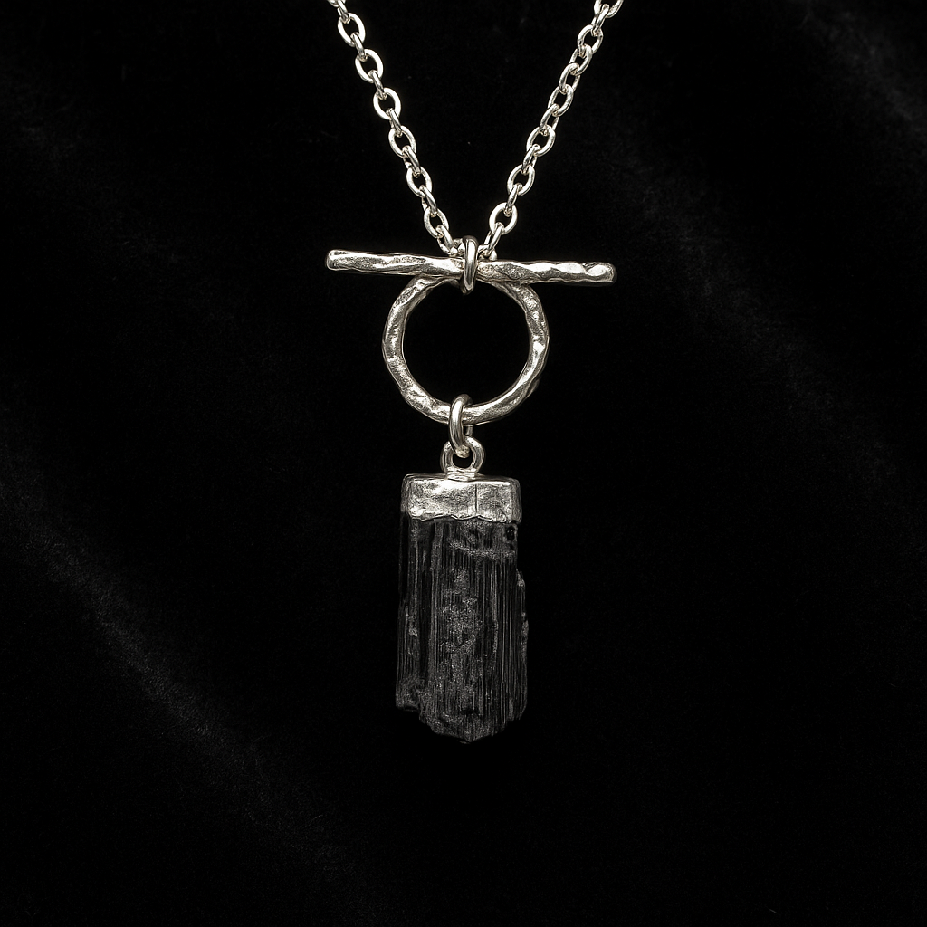 Powerful raw black tourmaline pendant, symbol of energetic protection and spiritual grounding.