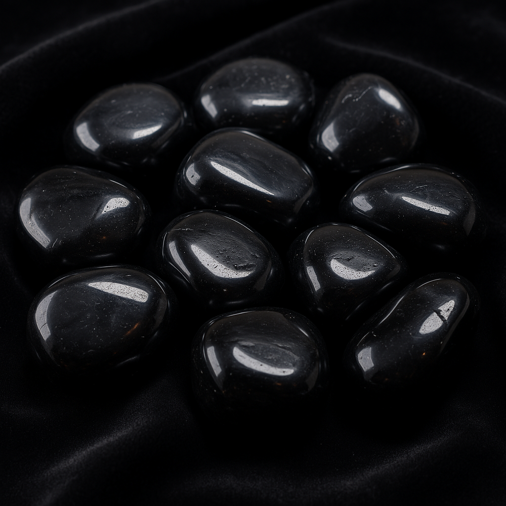 Natural Shungite tumbled stone from Russia. Perfect for EMF protection, energy cleansing, grounding, and environmental harmonization.