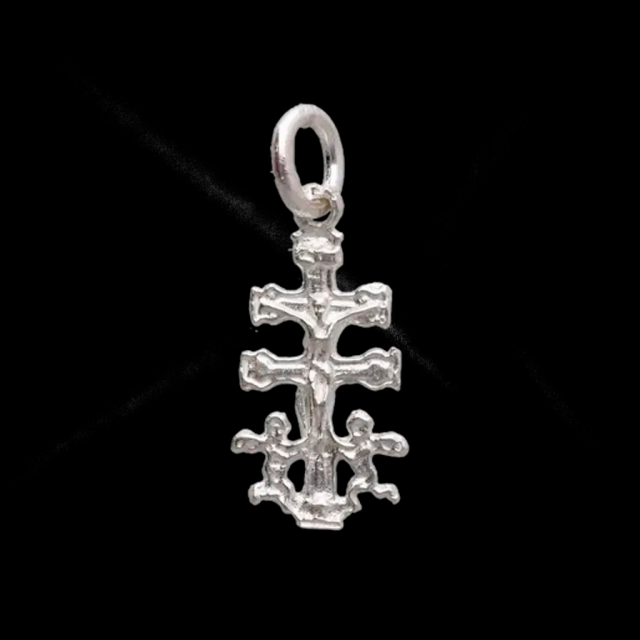 The Caravaca Cross is one of the most renowned Christian symbols of faith and protection. This miniature version, handcrafted in silver, features the patriarchal double-barred cross and the iconic angels who, according to legend, brought it to Caravaca de la Cruz. Used for centuries as a spiritual shield, this cross is ideal for daily wear or sacred spaces. Its presence brings blessing, protection, and strength in the face of adversity.