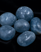Natural celestine tumbled stones from Brazil. A stone of celestial connection, deep serenity, and spiritual channeling.