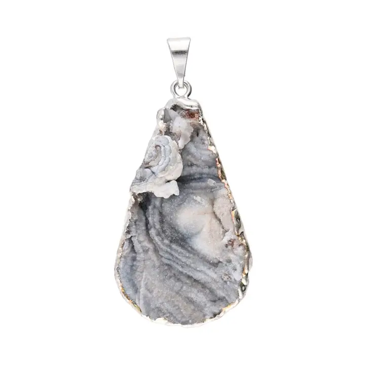 Crystallized chalcedony pendant, a natural jewel with a unique texture that enhances calm and communication.