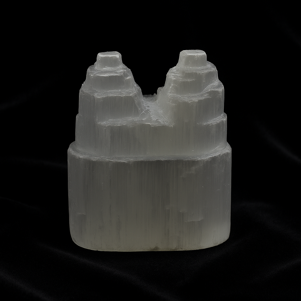 Selenite is renowned for its cleansing, purifying, and protective properties. Place it on your altar, meditation area, or at the entrance of your home to dissolve negative energy and elevate the vibration of your space. The dual-tower shape enhances light energy and spiritual awareness.