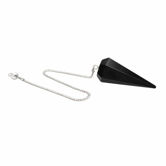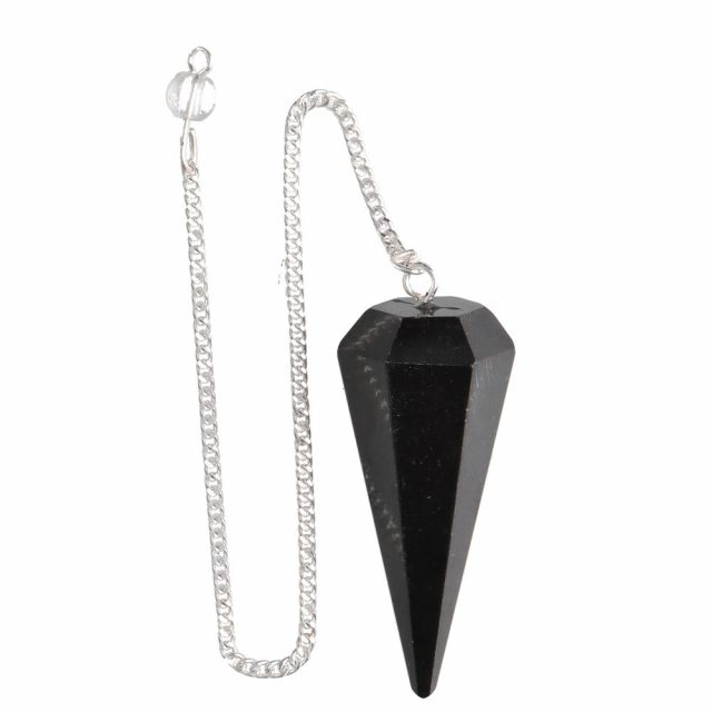 Faceted pendulum made of natural black tourmaline, ideal for energetic protection and spiritual cleansing work.