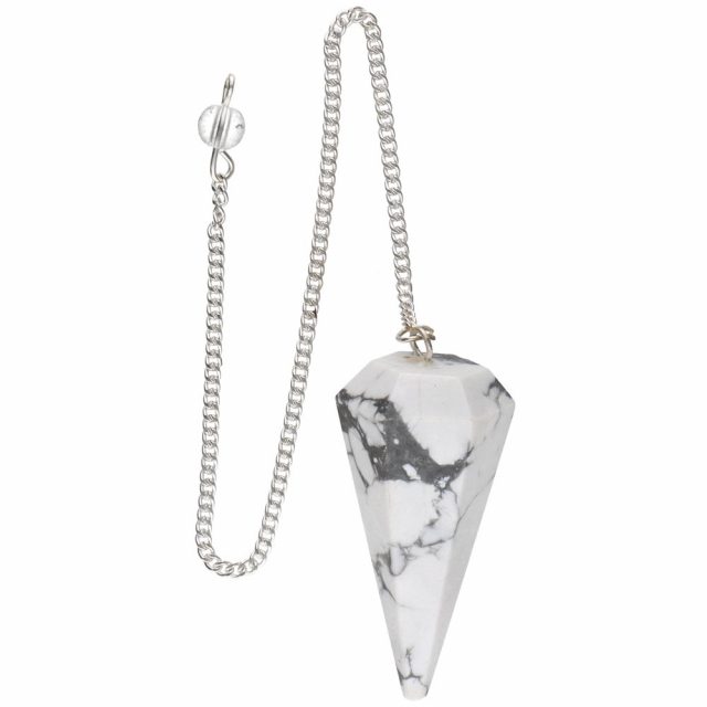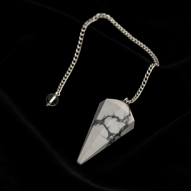 Faceted howlite pendulum, perfect for calming the mind, releasing stress, and enhancing spiritual introspection.