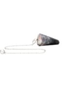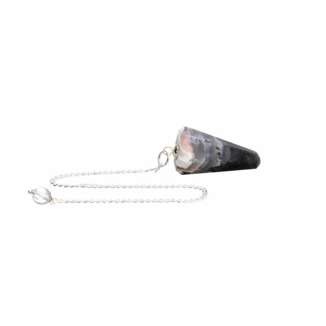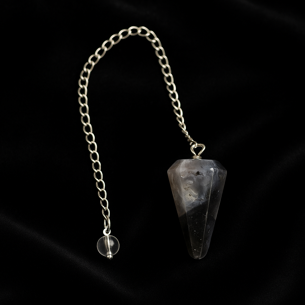 This pendulum is carved from moss agate, a stone that holds within it the ancient whisper of forests. Its green inclusions resemble moss frozen in time, offering a reminder of Earth’s wisdom and the wild magic of nature.