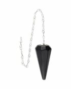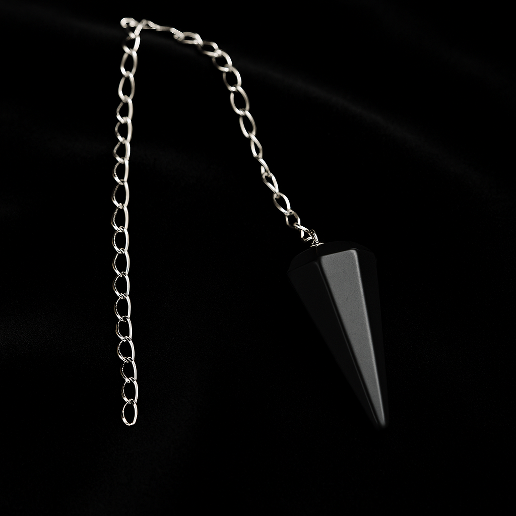 This pendulum is carved from natural obsidian, an ancient volcanic glass that serves as an energetic shield and a mirror to the soul. Its deep black color aids in unveiling hidden truths, dissolving emotional blockages, and protecting against dense or malicious external energies.