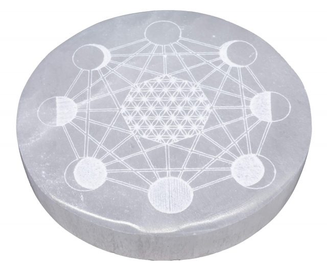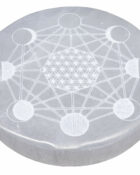 White selenite round plate engraved with the Tree of Life. Ideal for charging and purifying crystals.