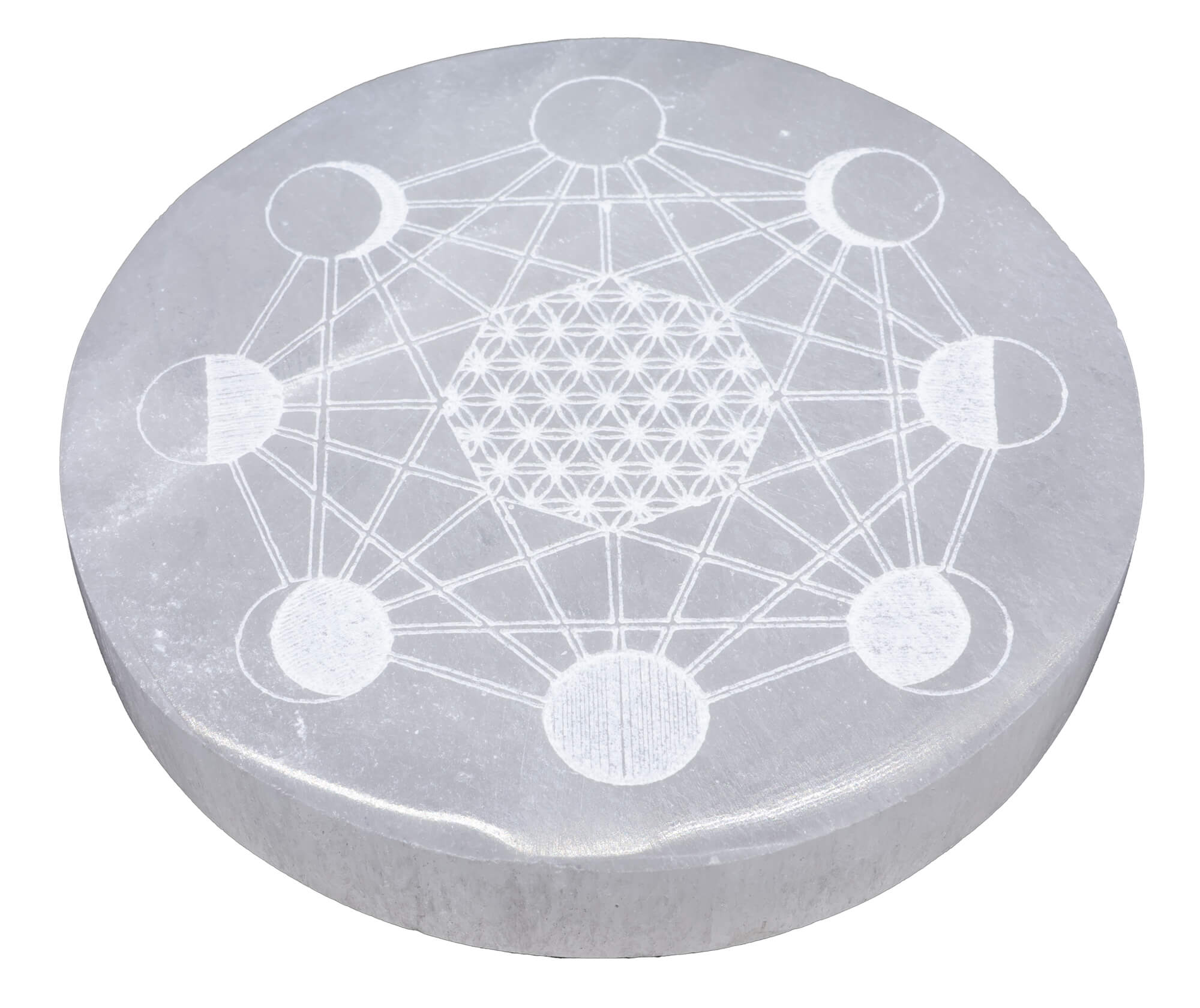 Flower Of Life Circle Selenite Plate