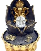 This decorative fountain features Lord Ganesh, the Hindu deity of wisdom, prosperity and remover of obstacles, seated on a lotus flower – a symbol of purity and spiritual rebirth. Made from resin with an antique golden finish, it includes a crystal sphere, representing the ever-turning energy of the universe.
