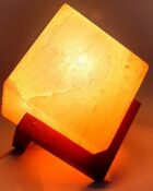 This elegant Himalayan salt lamp, shaped, is hand-carved from natural salt crystals sourced from the mountains of Pakistan. Its warm glow creates a serene atmosphere and is believed to offer air-purifying and energetic benefits.