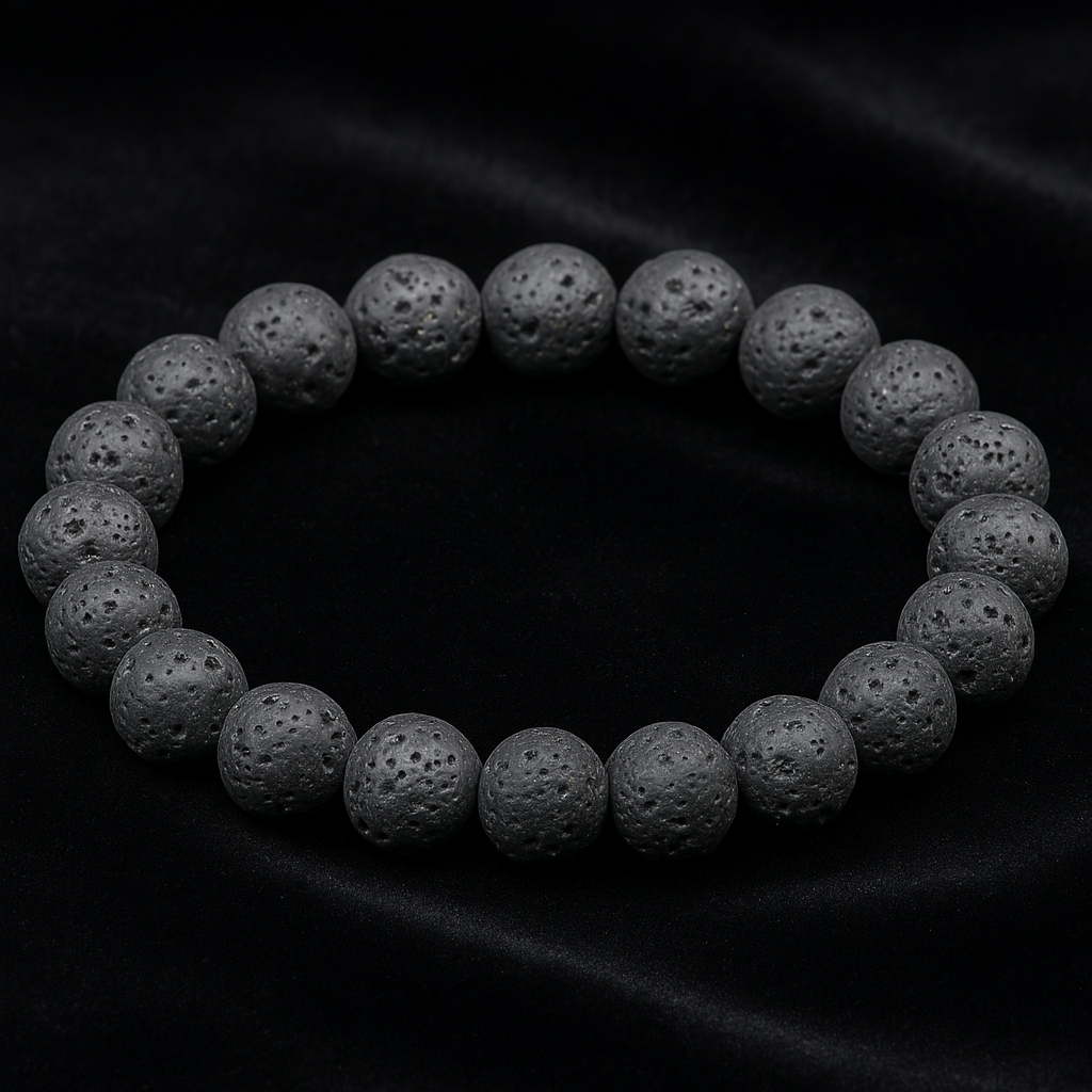 This lava stone bracelet is crafted with natural volcanic rock beads, shaped by the Earth’s primal fire and energy. Its porous surface and raw texture speak of elemental power and resilience.