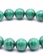 This malachite bracelet features polished beads displaying the stone’s hypnotic green bands and swirling patterns. Malachite is widely known as a stone of transformation, absorbing negative energies and protecting against external influences.