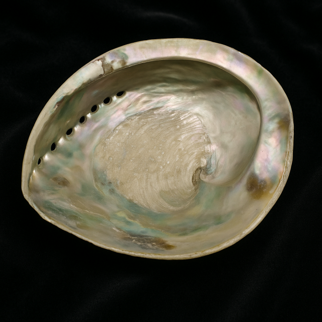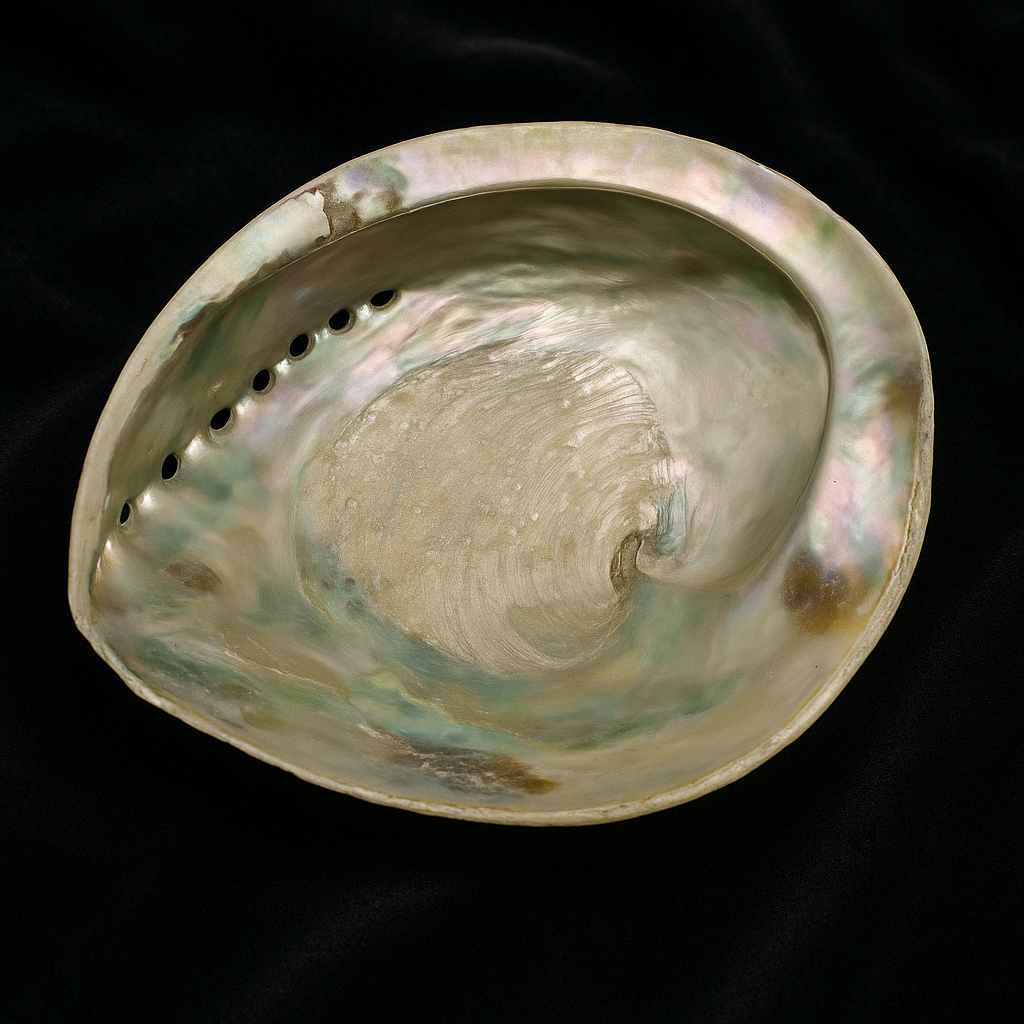 The Natural Abalone Shell is a sacred tool widely used in spiritual and shamanic practices. Its nacreous interior displays iridescent lights that symbolize the connection with the spiritual realm. Traditionally used as a smudging bowl to hold sacred herbs like palo santo or white sage during purification rituals, energy cleansings, or meditations.
