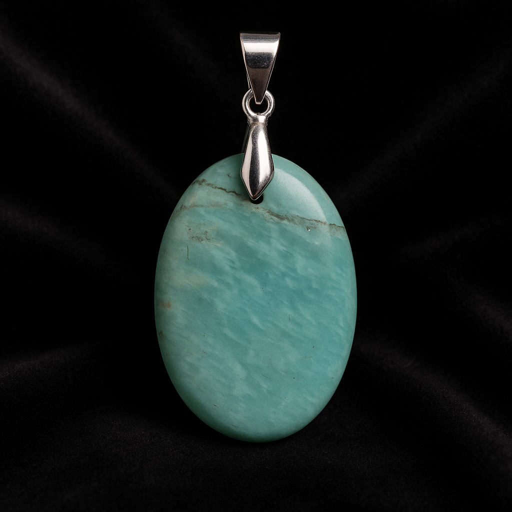 Natural oval amazonite pendant, ideal for balancing energy and calming the mind.