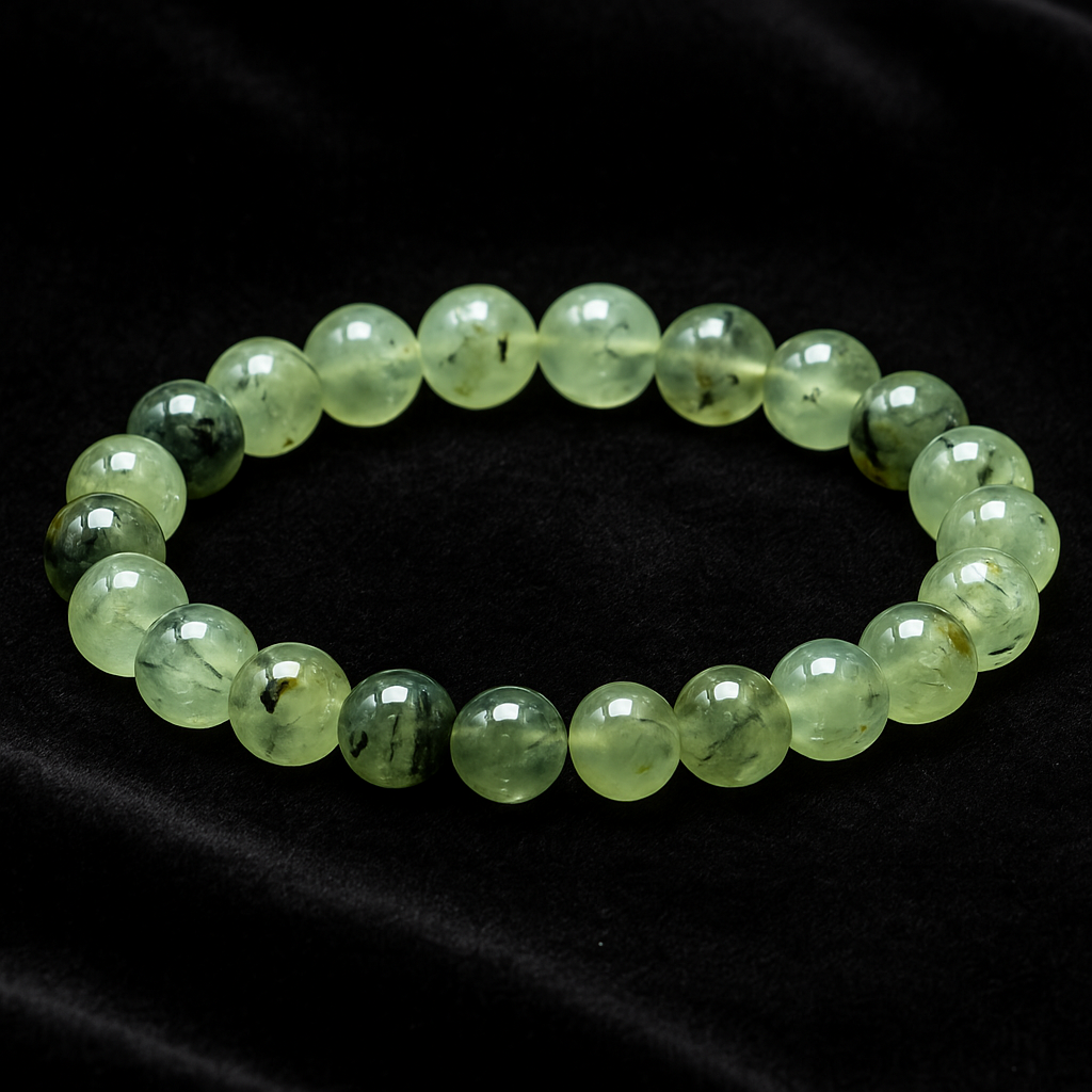 Elastic bracelet made of natural prehnite. Perfect for heart healing, psychic protection, and spiritual connection.