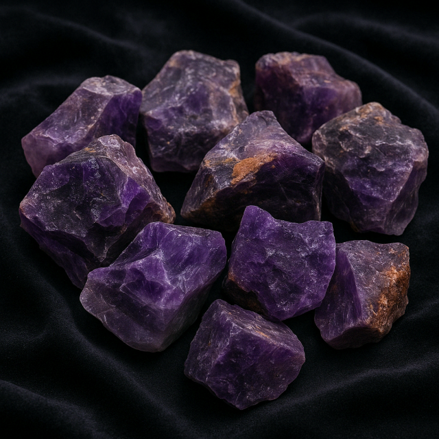 Natural raw amethyst chunks. The ultimate spiritual stone, ideal for meditation, transmutation, and energy protection.