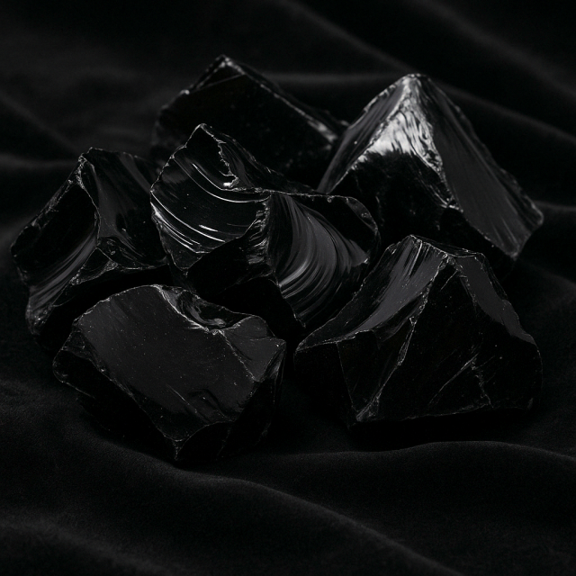 Raw black obsidian chunks, a symbol of energetic protection and deep inner connection.