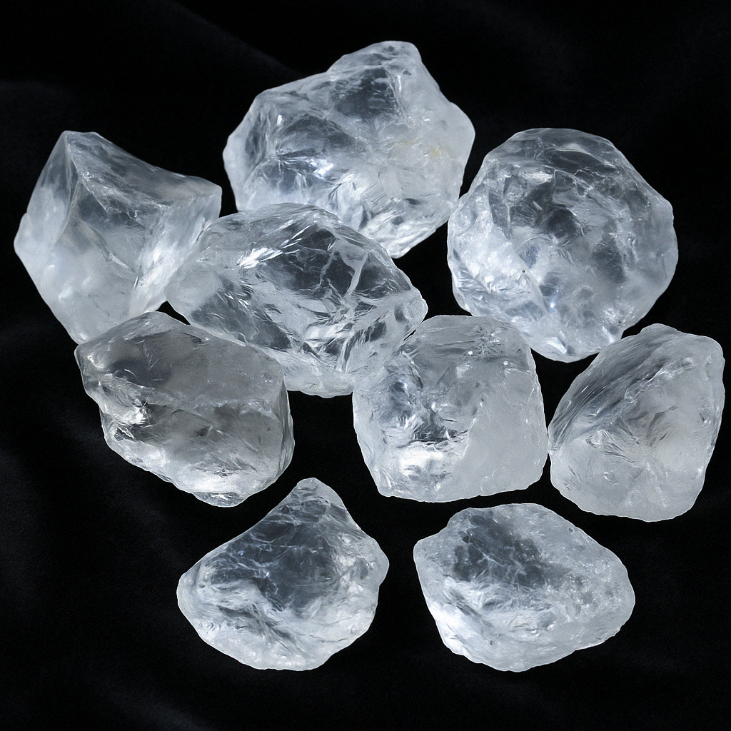 Clear quartz, also known as rock crystal, is one of the most powerful and versatile stones in the mineral kingdom. These raw fragments from the vibrant lands of Brazil retain their natural translucent form, as if frozen beams of light.