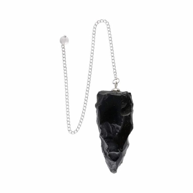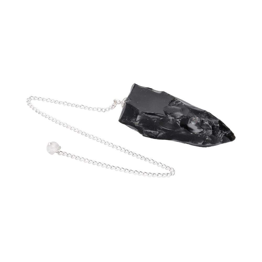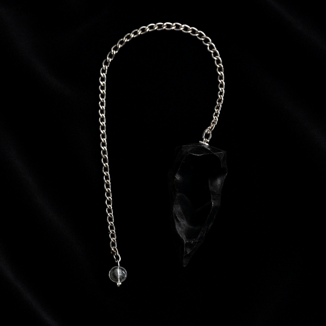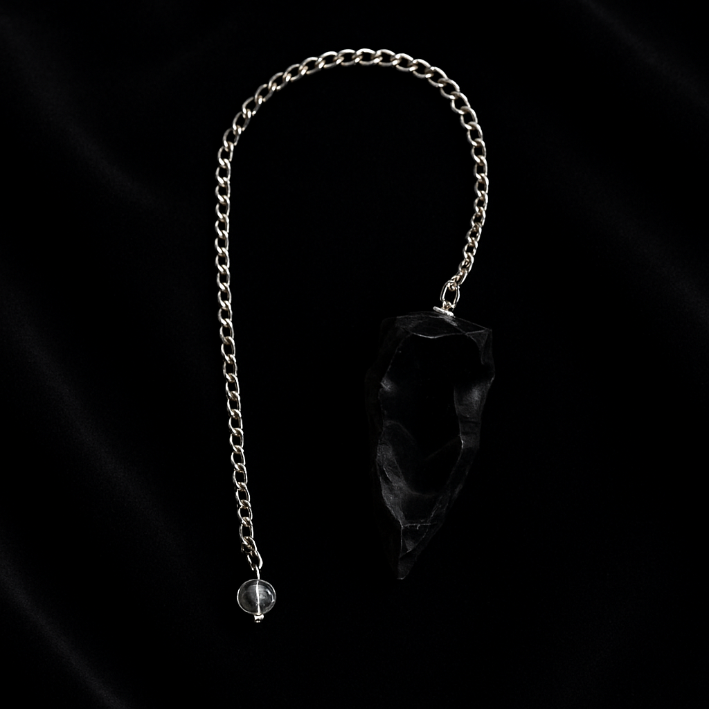 This pendulum is crafted from a raw piece of black obsidian, preserving its primal volcanic essence and grounding power. Obsidian is revered for cutting through negativity and unveiling hidden truths, making it a potent mirror of the soul in divination sessions.