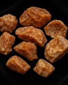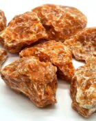 This raw red calcite stone comes from the warm lands of Mexico, and retains the full power of its unpolished natural form. Its intense reddish-orange hue, with light veins and crystalline texture, awakens a zest for life, stimulates action, and helps release deep emotional blockages.