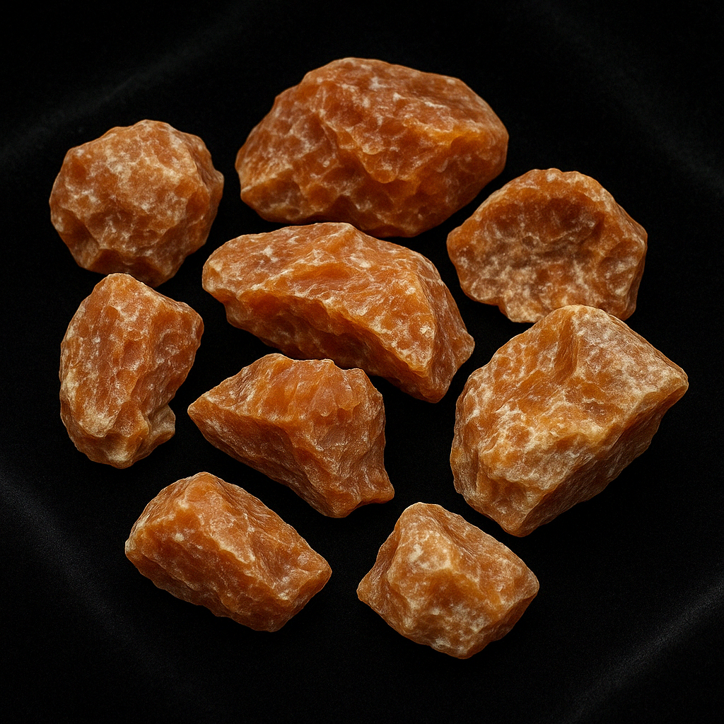 Traditionally used to activate the root chakra, red calcite is a grounding stone of inner strength and stability. Its warm and direct energy makes it ideal for times of change, big decisions, and personal renewal.