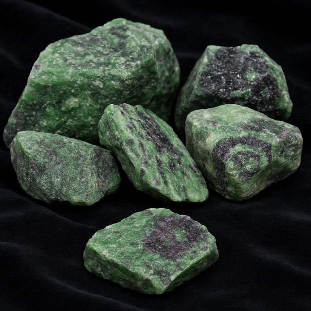 Raw Ruby Zoisite stones from Tanzania, a natural fusion of ruby's vital force and zoisite's calming energy—perfect for channeling passion and inner harmony.