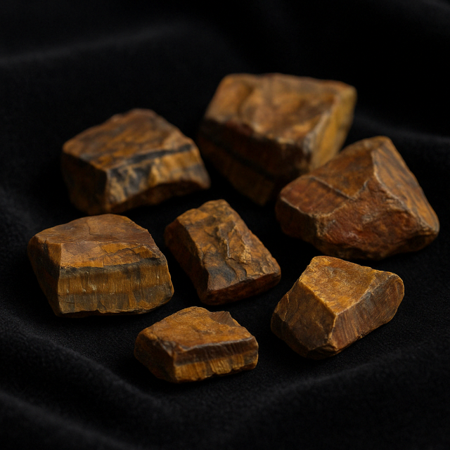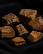 Natural raw tiger’s eye chunks, known for their protective energy and inner strength connection.
