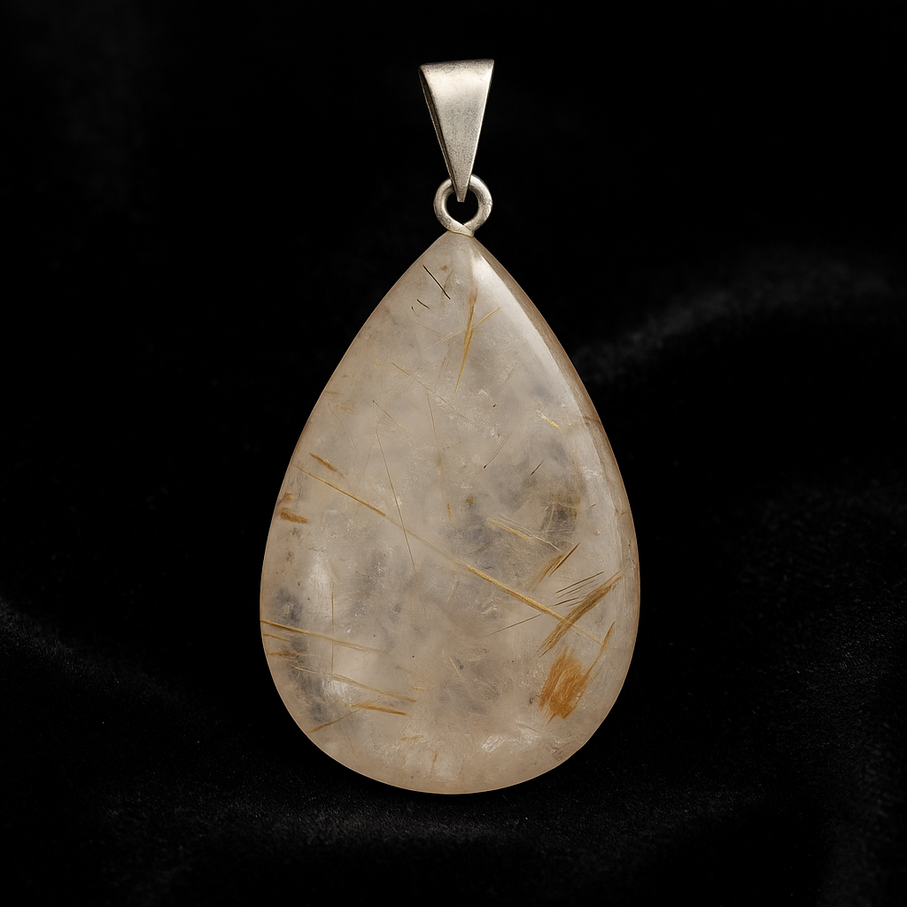 Natural rutilated quartz pendant, a gem of inner light, mental clarity and energetic protection.