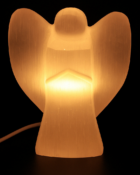 Natural selenite lamp carved into a angel shape, perfect for harmonizing spaces, raising vibrations, and cleansing crystals.