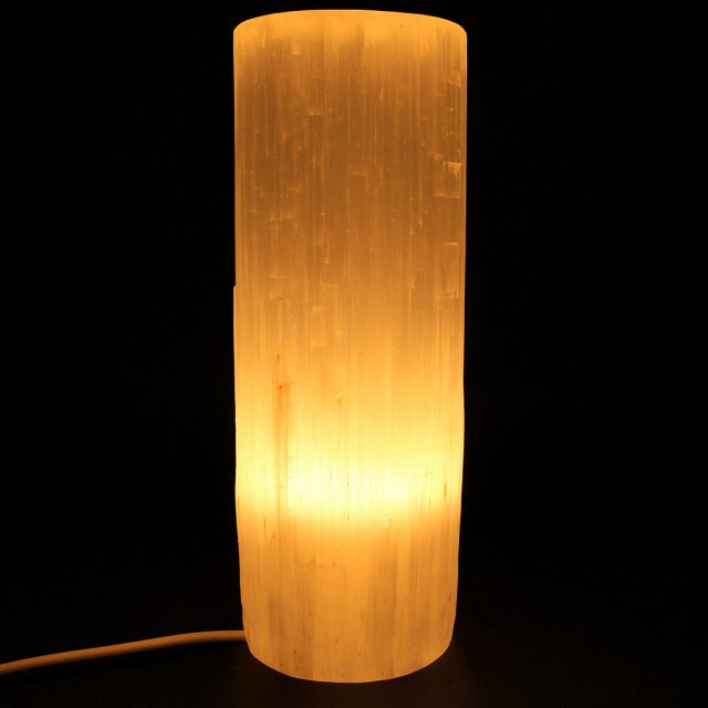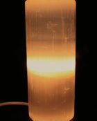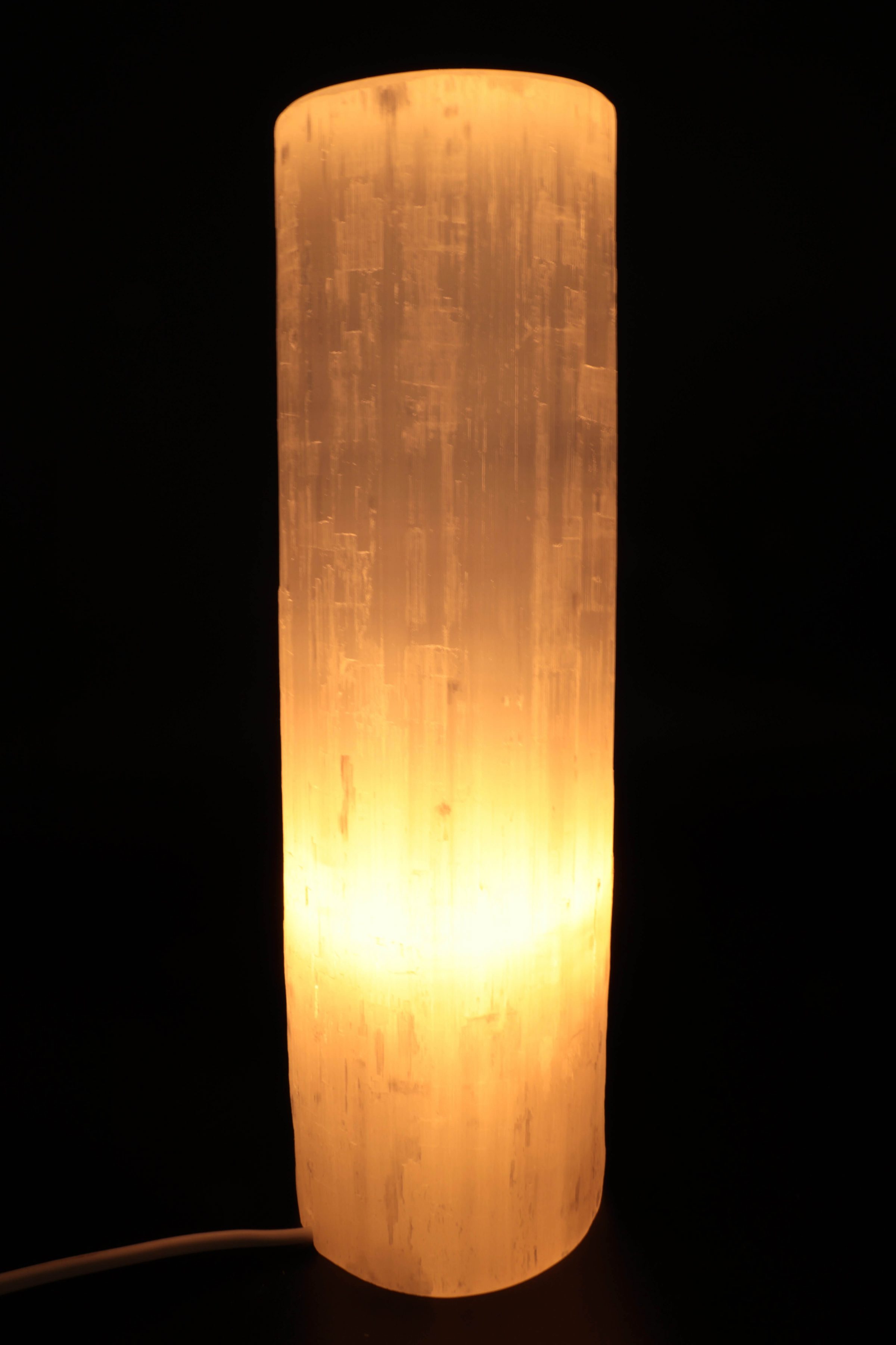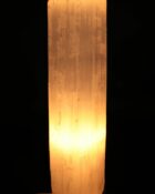 Natural selenite lamp carved into a tower shape, perfect for harmonizing spaces, raising vibrations, and cleansing crystals.